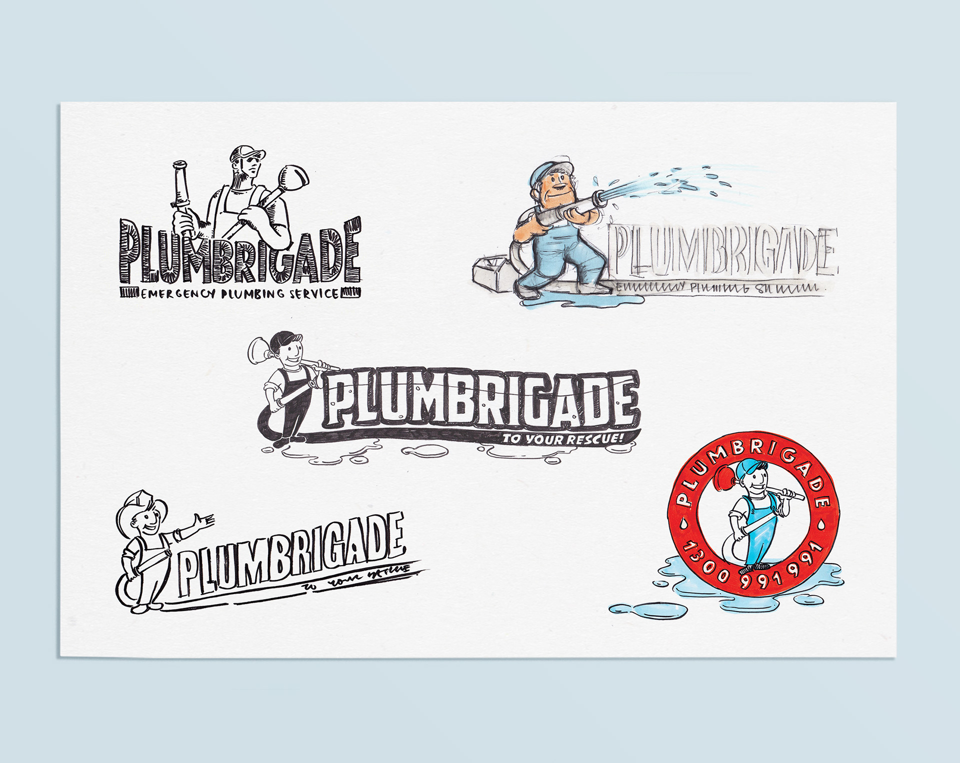 A new Sydney plumbing business came to us with the name PLUMBRIGADE. They had a vision of a firefighter with hose in hand. Although we created a number of interesting versions of the character we recommended that he be more plumber-like as the wordmark alone was so bold & eye-catching.